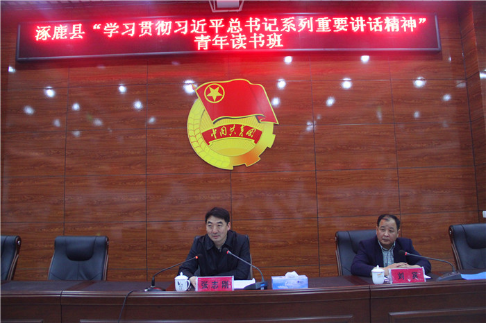 2016年5月4日,团县委组织的涿鹿县“学习贯彻习近平总书记系列重要讲话精神”青年读书班在涿鹿中学报告厅隆重开班。涿鹿县委副书记张志刚、县委常委刘宾、团县委书记马大伟、副书记刘晓旭、王大成、办公室主任刘鹏出席活动。涿鹿县大学生村官、县直机关、企业、社会组织、农村青年致富带头人、中小学学生等230多位优秀青年代表参加活动。涿鹿中学校长赵建华、副校长孟庆泉、杨景丹、校团委书记郭冬根、团委王佰成老师及15名优秀学生代表参加了此次读书班的培训。