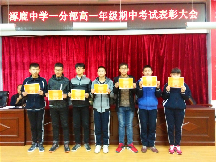 2016年11月27日晚,涿鹿中学一分部高一年级在学生报告厅召开期中考试表彰大会。乔桂民主任、各班班主任和一分部全体高一学生参加大会。白瑞明老师主持表彰会。
