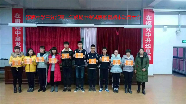 本次大会表彰了精英15班年级前120名,共39人;预科16班年级前120名,共11人。其他班级表彰班级前10名及每班成绩进步奖5名。大会同时对三分部高二年级自开学以来各方面所取得的进步予以表彰,表彰了年级最佳课代表、校级组织奖9人、“优秀宿舍”8个。