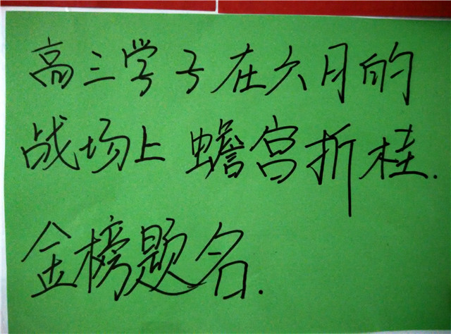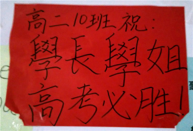 战鼓隆隆催人奋进,旌旗列列共赴征程。寒窗耕读,终将收获,又到一年一度的高考季。我校高三学子秣马厉兵,为高考作最后的冲刺。 “高考的征程上你并不是孤独,诚挚的祝福,是伴你远行的真实写照,高考征途中老师、家长、同学都会坚定的陪在你左右。” 高一高二年级的同学们在高考祝福板上,自发为高三学长送上祝福—— “回首向来萧瑟处,每一次日出、每一层涟漪都是美丽动人的;每一袭风浪、每一片乌云都是值得感激的。二分部高二年级12班全体同学,衷心地祝福高三同学在今年高考中一举夺魁,榜上有名!” “心有多大,舞台就有多大。只要拥有自信,拥良好心态,加上自己的努力,那么你一定会到达成功的彼岸。高考在即,我们坚信只要你努力,就一定会有不菲的收获。”——这是来自高二14班的高考祝福。 “百日誓师砺兵林马迎高考何忧无友,六月会战勇冠三军夺蟾桂必定有君。三年的汗水即将化为胜利的果实,用汗水谱写自己的青春赞歌。高考路上你们并不寂寞,二分部高二年级全体师生将一路为你们加油鼓劲!” 今天为你们加油,放飞梦想,祝福你们蟾宫折桂。明年我们也将奔赴高考征程,继续努力,感恩成长,力争题名金榜,圆梦涿中! 涿鹿中学 王昕刚 张盼