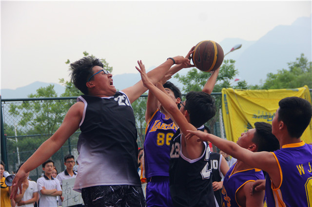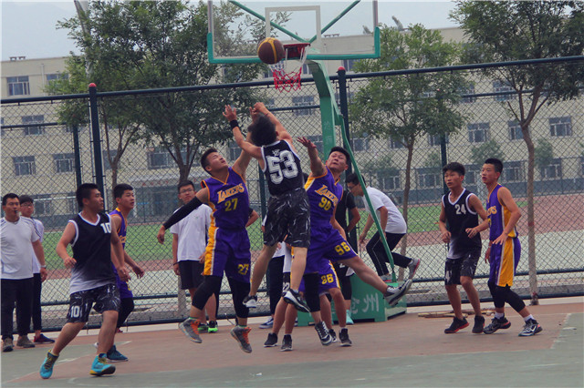 本届篮球赛是我校建校以来规模最大的一次篮球盛会,全校共有四十二支代表队参赛。本届篮球赛由政教处统一组织,采用2014年最新篮球规则,小组第一轮、第二轮及第三轮采用淘汰制,第四轮采用循环制。侯非凡、乔桂民、董新来、李铮老师担任裁判。