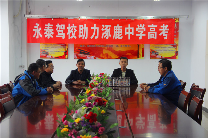 近日,涿鹿永泰驾校市场部主管闫志峰先生一行到涿鹿中学慰问高三年级教师,为2018年高考加油鼓劲。涿鹿中学常务副校长张成、校团委书记郭冬根和高三年级主任王垚冰、祁万民、王昕刚、张孝玉与闫志峰先生一行进行了亲切交谈。