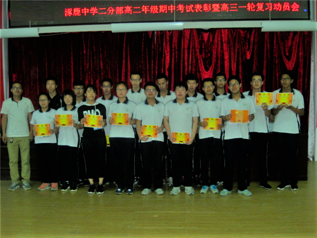 为了表彰在期中考试中获得优异成绩的学生,以榜样引导学生发展,抓紧一轮复习,努力学习,提升成绩,涿鹿中学二分部隆重召开“期中考试表彰会暨高三一轮复习动员大会”。参加本次表彰会的有二分部主管校长赵文成、二分部级部主任何利以及全体班主任老师。本次表彰会由二分部高二级部主任何利主持。