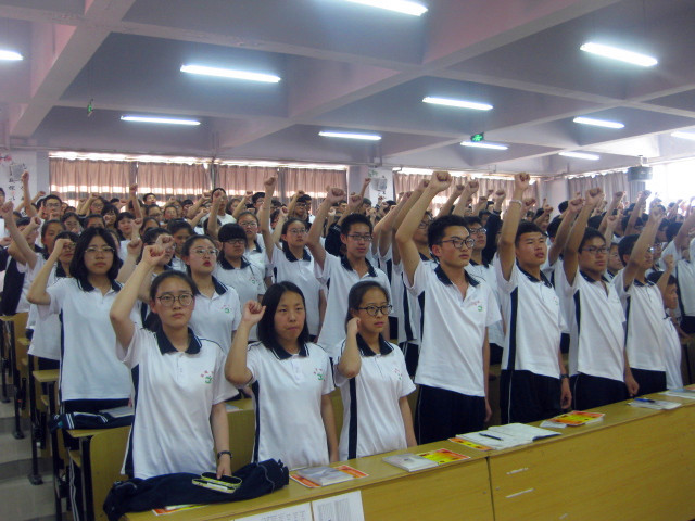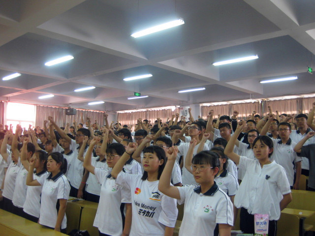 在赵校长讲话的感召下,全体同学进行宣誓。同学们精神饱满,声音高昂,宣示着对一轮复习的决心,宣示着对高考必胜的信心!