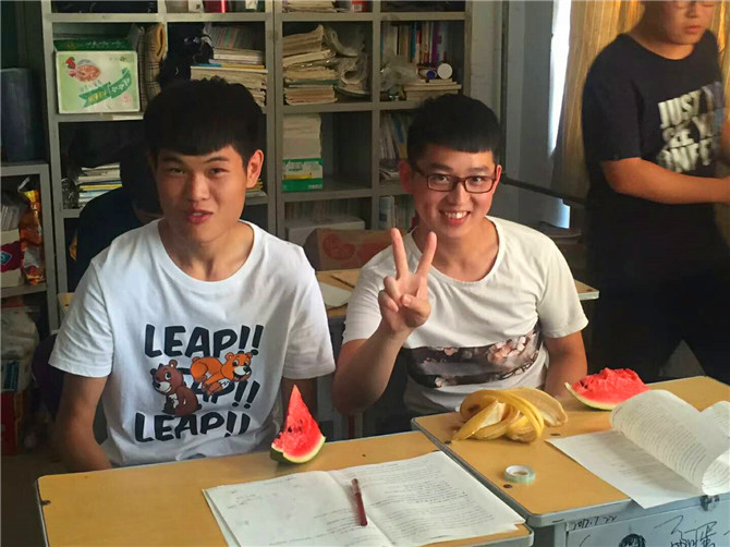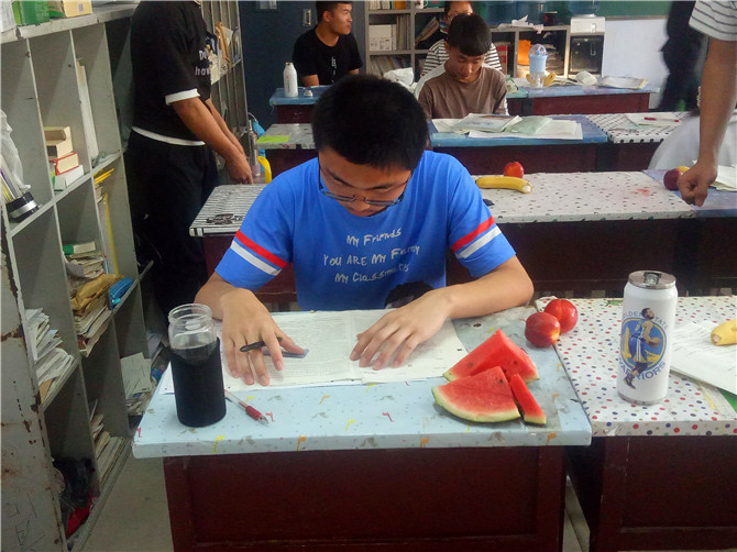学校为每个班精心准备了各类新鲜水果。看着来自家长或弟弟妹妹等亲人的祝福视频,吃着香甜可口的新鲜瓜果,和身边的老师交谈着过去美好的时光,高考的紧迫感和压力纾解在这果蔬飘香、情义满满的氛围中。所有的爱与期待,此刻都化作满满的信心与决心,2018年高考,必胜!